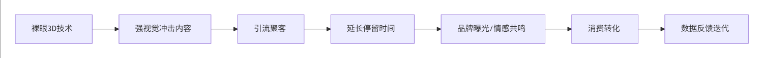 裸眼3D技術 強視覺沖擊內容 引流聚客 延長停留時間 品牌曝光/情感共鳴 消費轉化數據反饋迭代